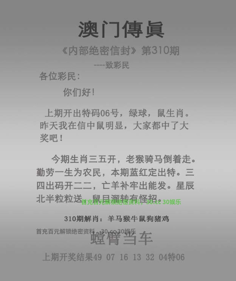 | 2025-310期传真: 今期生肖三五开,老猴骑马倒着走。 勤劳一生为农民,本期蓝红定出特。 三四出码开二二,亡羊补牢出能发。 星辰北半粒粒送,鼠目溜转有怪招。 解:今期生肖三五开,老猴骑马倒着走。三五解羊,明肖猴马。勤劳一生为农民,本期蓝红定出特。红蓝波。三四出码开二二,亡羊补牢出能发。三四二二解猴,明肖羊。星辰北半粒粒送,鼠目溜转有怪招。星辰解天肖,北半解北肖猪羊兔,明肖鼠。 综合:羊猴马猪兔鼠牛虎龙 |